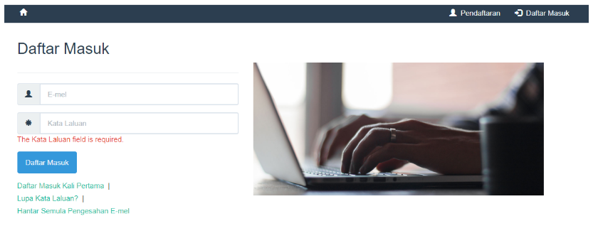 Daftar masuk menggunakan emel dan kata laluan yang telah disahkan.