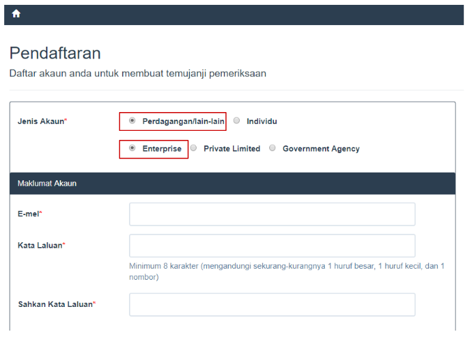 Pilih jenis akaun ‘Perdagangan / Lain-Lain’, kemudian pilih ‘Enterprise’