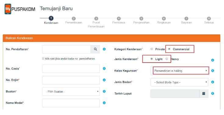LANGKAH 3 - Lengkapkan maklumat kenderaan anda