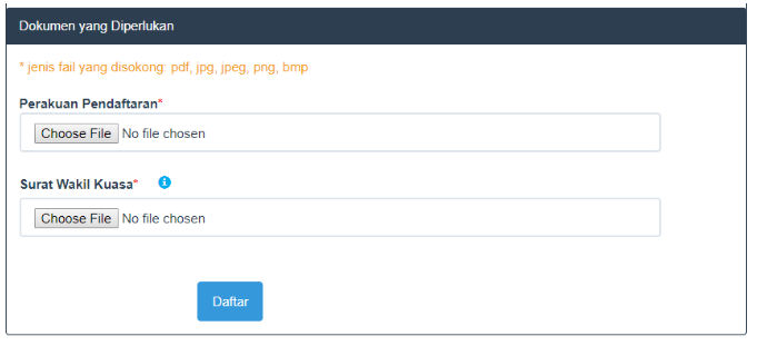 Surat Wakil Kuasa → Salinan Kad Pendaftaran Kereta yang telah diperakui ATAU salinan Sijil Pemilikan Kenderaan yang telah diperakui oleh Pesuruhjaya Sumpah atau Pegawai JPJ