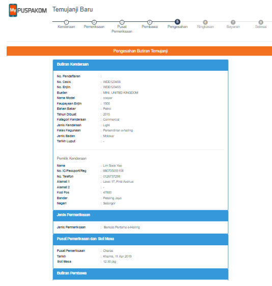 Bahagian 2: Temujanji Pemeriksaan Puspakom